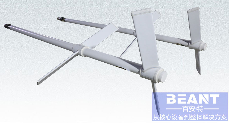 3、槳式襯四氟攪拌有平槳式和斜槳式兩種。平槳式攪拌器由兩片平直槳葉構(gòu)成。槳葉直徑與高度之比為4~10,圓周速度為1.5~3m/s,所產(chǎn)生的徑向液流速度較小。斜槳式攪拌器的兩葉相反折轉(zhuǎn)45°或60°,因而產(chǎn)生軸向液流。槳式攪拌器結(jié)構(gòu)簡單,常用于低粘度液體的混合以及固體微粒的溶解和懸浮。